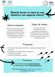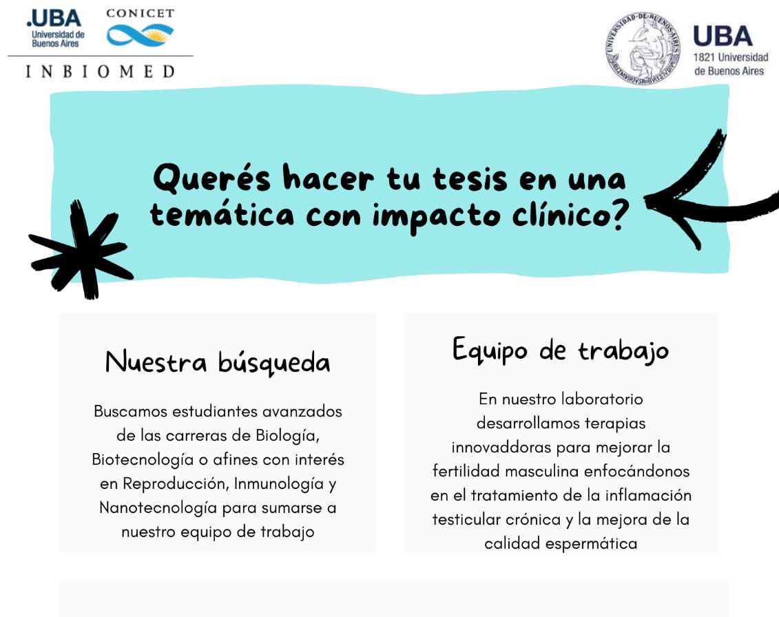Nueva búsqueda: Buscamos estudiantes avanzados de la carrera de Biología, Biotecnología o afines con interés en Reproducción, Inmunología y Nanotecnología para sumarse a nuestro equipo de trabajo.